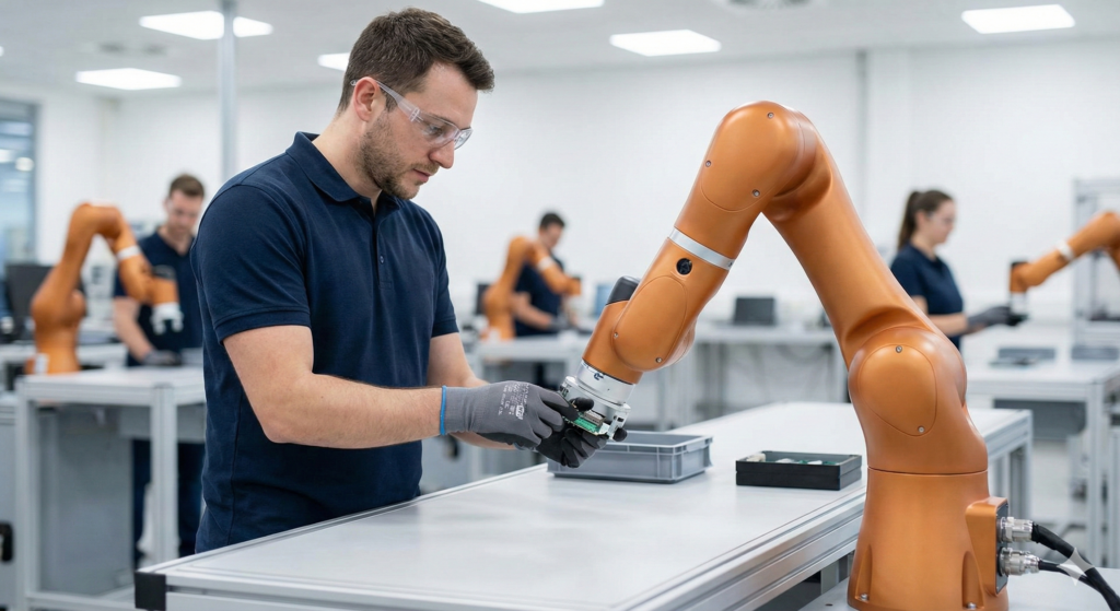 안전 펜스 없이 사람과 같은 공간에서 작업할 수 있다는 것이 가장 큰 장점입니다. 센서 기술의 발달로 사람이 다가오면 자동으로 멈추거나 속도를 줄여 안전을 확보합니다. 무거운 부품을 들어 옮기거나 반복적이고 지루한 조립 작업은 로봇에게 맡기고, 사람은 더 창의적이고 섬세한 작업에 집중할 수 있게 됩니다.